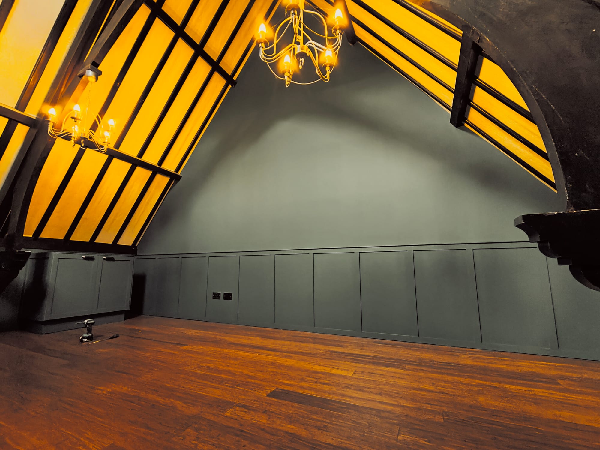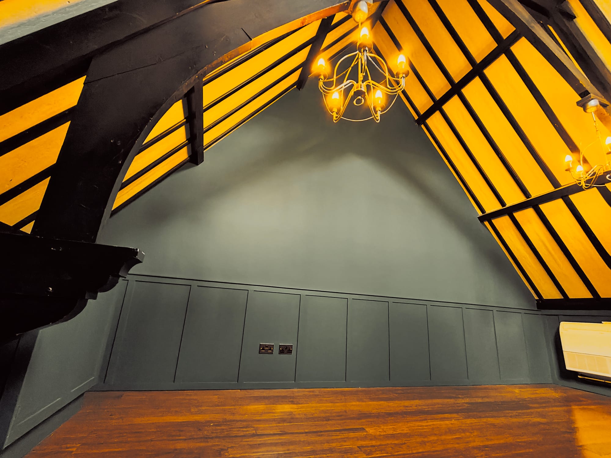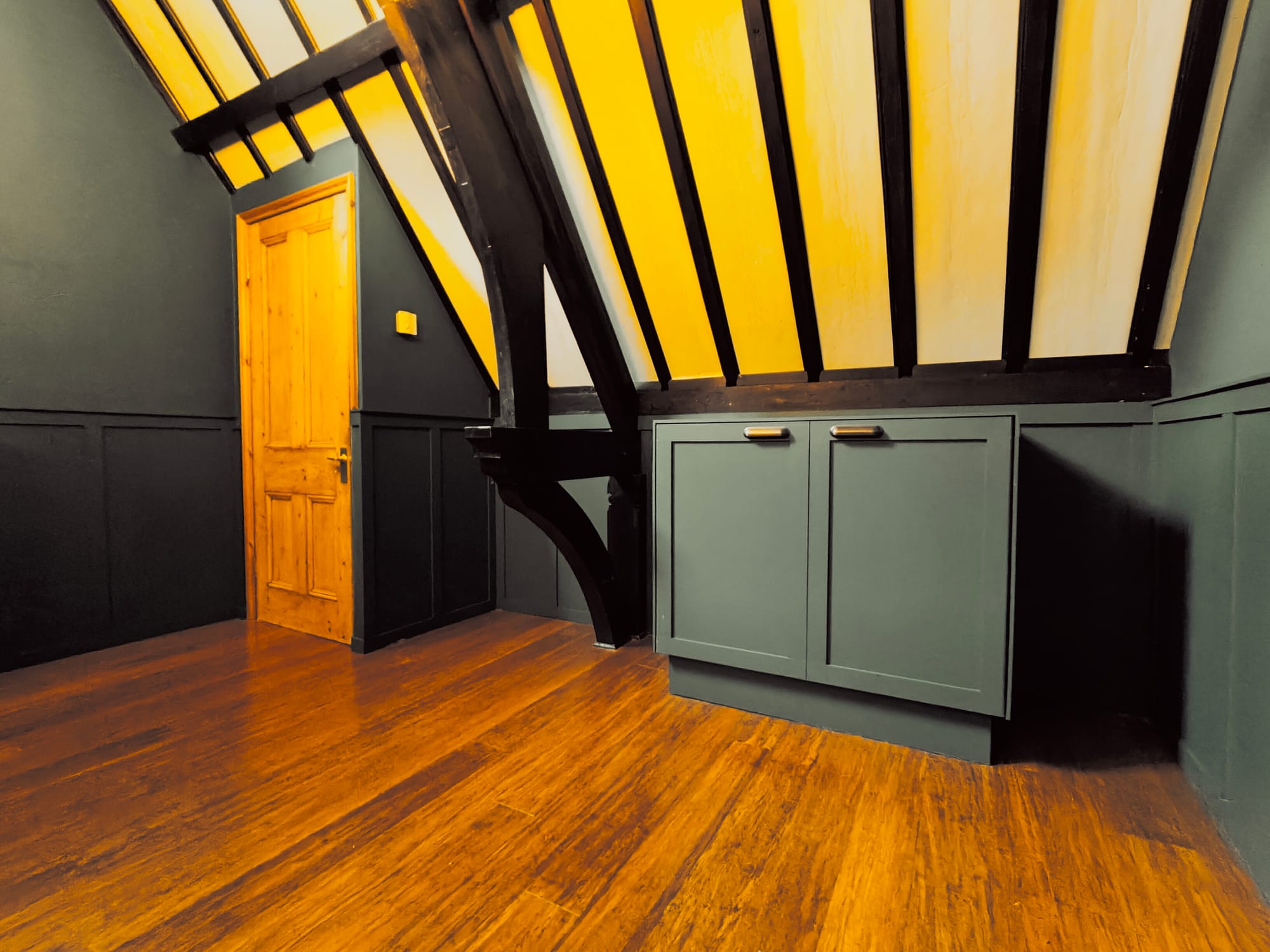 To create an optimal working environment, we installed an acoustic control wall system. This included rubber matting and sound-blocking plasterboard, ensuring excellent noise reduction. After installation, we re-skimmed the walls to achieve a flawless finish, creating a peaceful and distraction-free office that is as functional as it is beautiful.