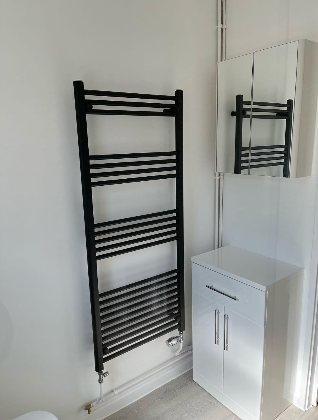 The flooring in this renovation was carefully selected for both style and practicality. We used waterproof click vinyl in a timber effect finish, offering the warmth and character of natural wood while being highly durable and easy to maintain. This choice complements the neutral decor, creating a calm and inviting atmosphere.
